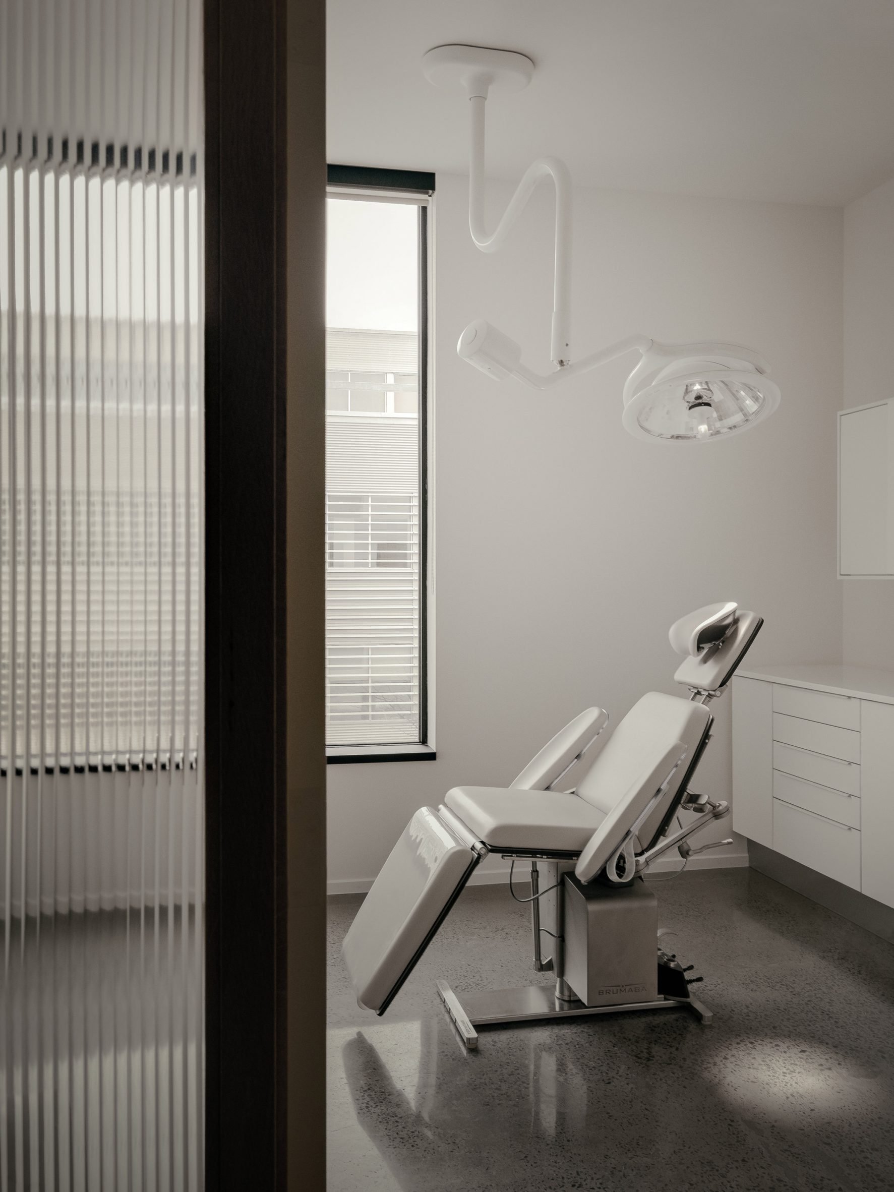 Part of the challenge was integrating medical requirements such as bright light and specific equipment into its design, according to the studio, which ultimately paired both with warm wood cabinetry and neutral-coloured seating.