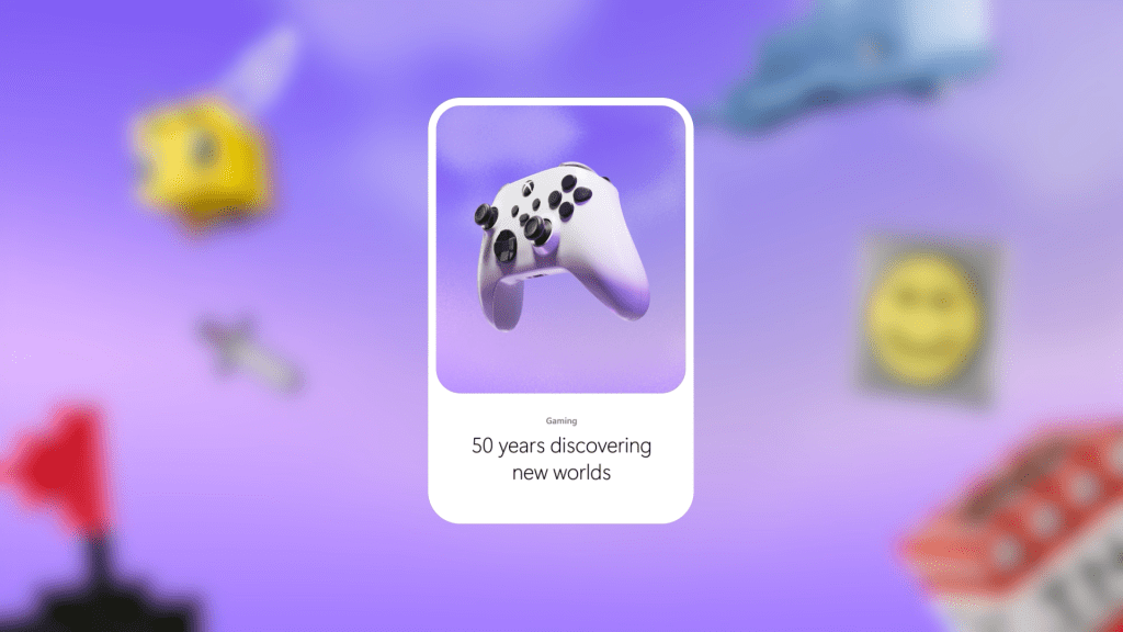 The campaign is built on a dynamic, modular identity system that feels alive. Visual compositions move between three main structures: “Worlds,” “Iconic Moments,” and “Then & Now.” These are less design gimmicks and more storytelling tools. “Worlds” places people at the center of richly imagined environments, surrounded by products and ideas that shaped their creativity. “Iconic Moments” looks back on milestones, such as the launch of Xbox or the first versions of Windows, not as static achievements but as cultural shifts. And “Then & Now” plays with time, pairing historic innovations with today’s breakthroughs to show a brand that never stopped evolving.