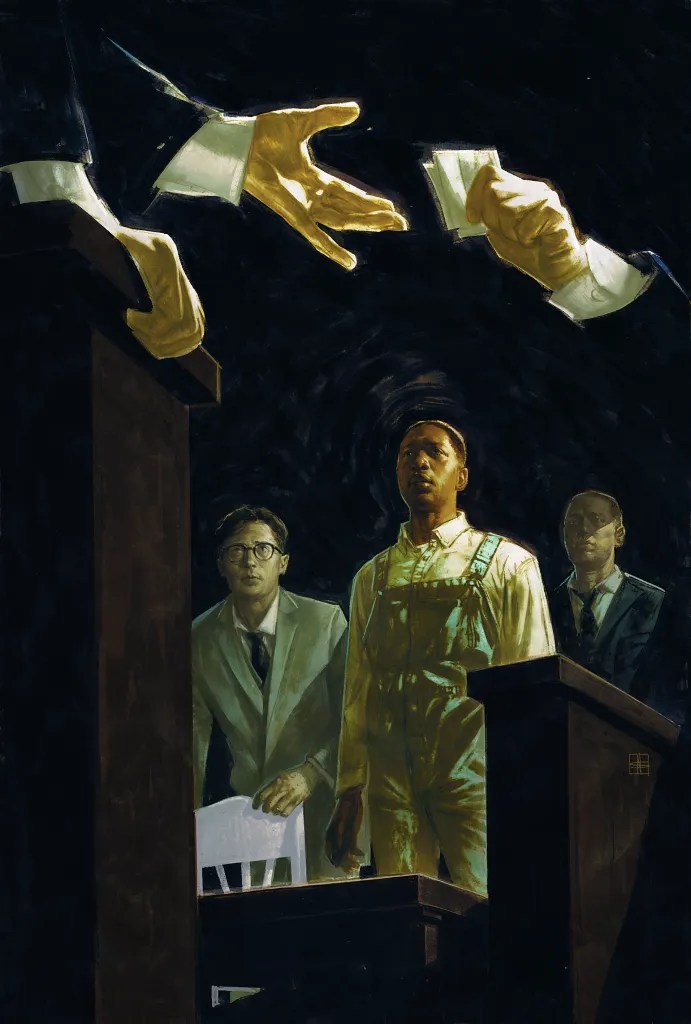 The two-floor, immersive exhibition features 91 illustrators from around the globe, with over 100 artworks curated by genre to transport viewers from the magical realism of A Wizard of Earthsea to the haunting landscapes of The Underground Railroad — a vibrant living archive of illustration’s role in literature that showcases how artists, through medium and imagination, make a good story unforgettable.