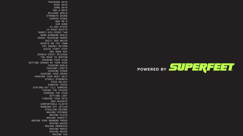 “Superfeet has always supported those who move,” says Trip Randall, the company’s CEO. “This is about speaking to that movement—wherever it happens, however it looks—with purpose and power.”