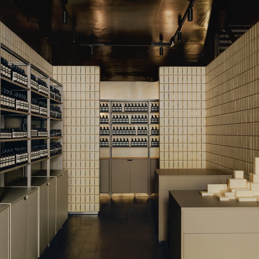 The open-plan kitchen is the apartment’s centrepiece, anchored by a chubby island clad in bespoke cream-coloured tiles with a distinctively glossy sheen.