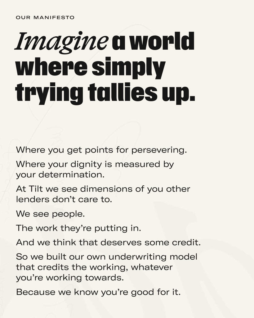 Formerly known as Empower, Tilt isn’t tinkering at the edges; its underwriting model considers over 250 non-traditional signals of financial health, from steady paychecks to responsible bill management, in an effort to extend access to those left behind by traditional lenders. But the rebrand goes beyond a functional fix; it’s a declaration that Tilt is here to credit people for what they’re capable of, not what they’ve been penalized for.