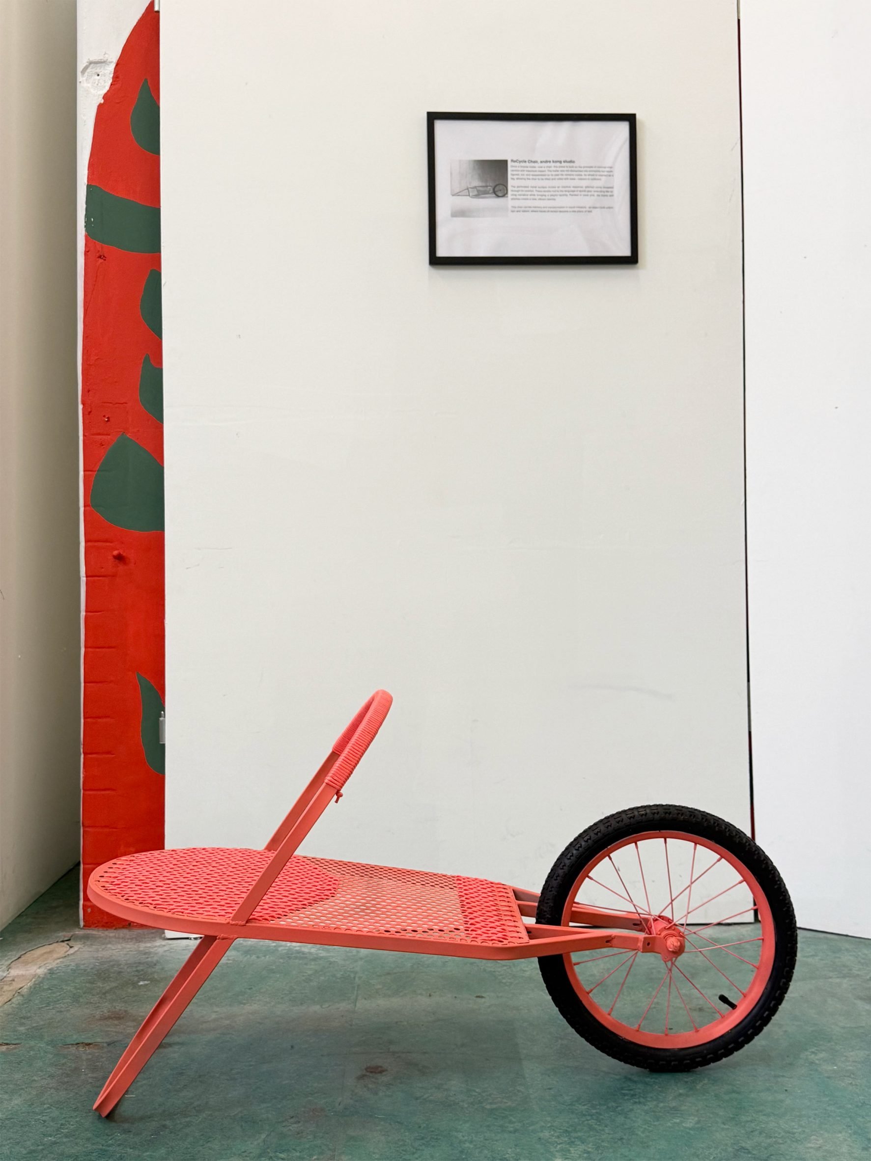 The exhibition also includes works from architect Andre Kong, who turned a bike trailer into a wheeled seat, and Studio Tip, which imbued a film prop chair with BDSM flair.