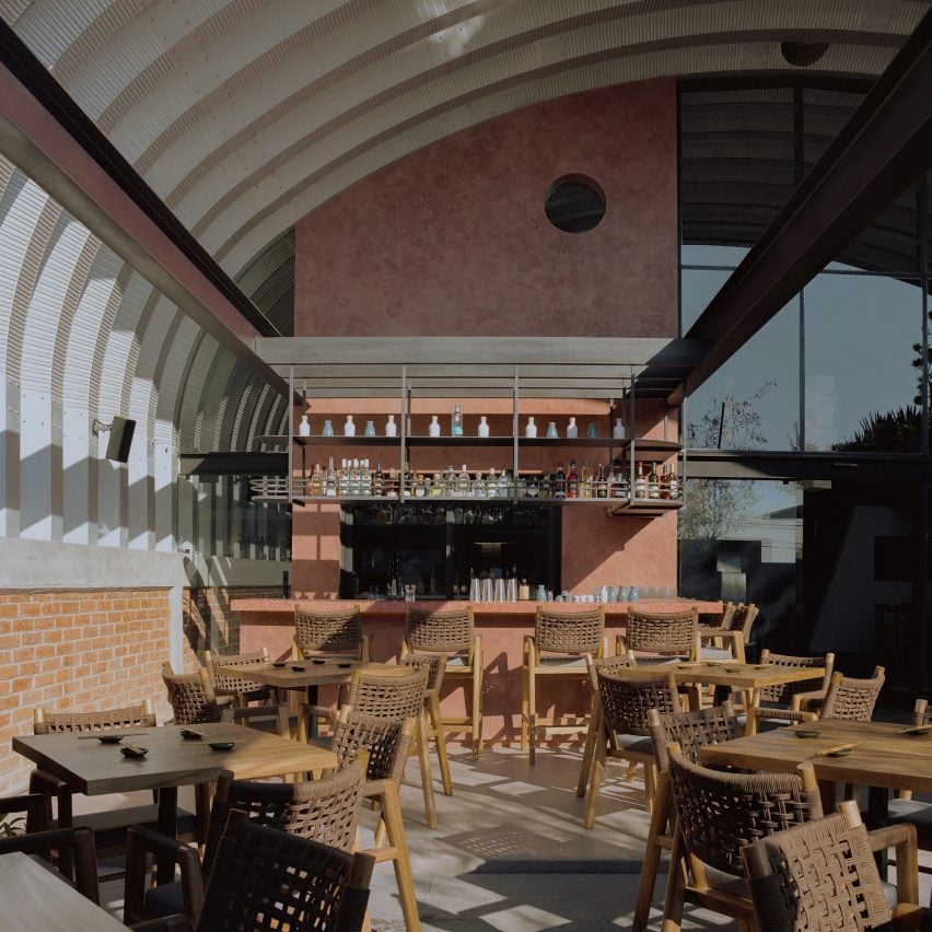 Mexico City studio CAAM + Arquitectos has vaulted a metal roof over a Japanese restaurant with brick walls in Querétaro, ...